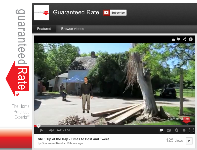 Guaranteed Rate’s YouTube channel has hundreds of short videos, and as of this post they’ve received over 43,700 views. They offer ways to shop for your home loan, all sorts of social media tips, even fun things like the company’s own Harlem Shake video.